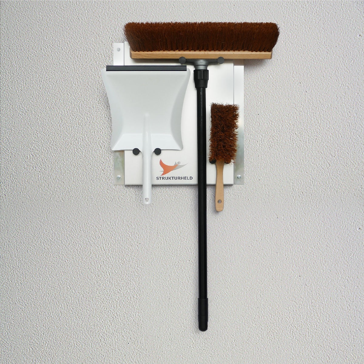 STRUKTURHELD® Industry – Kokosbesen Kehrset mit Wandhalterung & Kehrschaufel für Hof, Rampe & Außenflächen (5S Ordnungssystem)