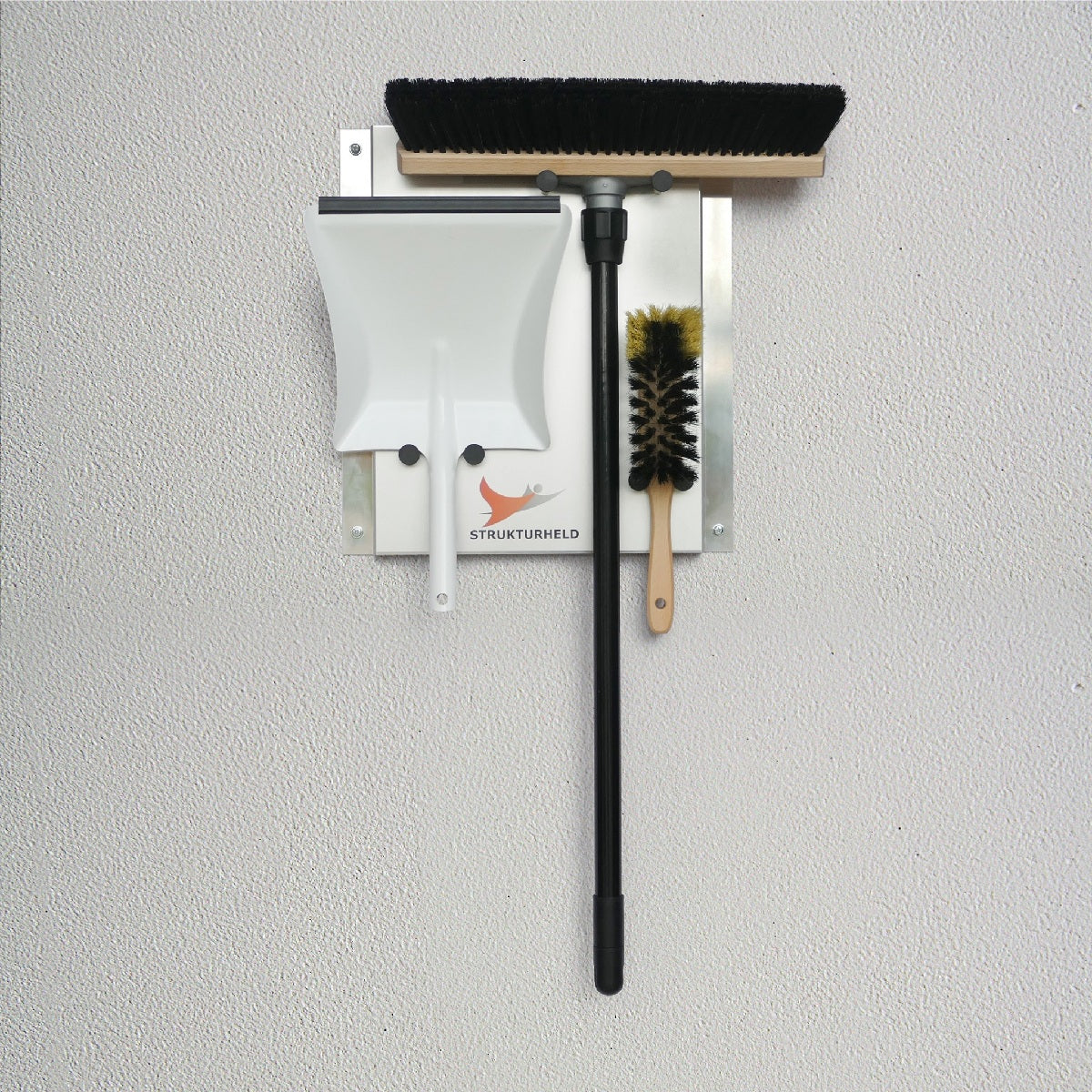 STRUKTURHELD® Industry – Saalbesen Kehrset mit Wandhalterung & Kehrschaufel für Büro, Schule & Innenräume (5S Ordnungssystem)