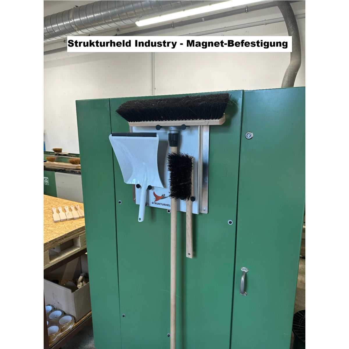 STRUKTURHELD® Industry – Kokosbesen Kehrset mit Wandhalterung & Kehrschaufel für Hof, Rampe & Außenflächen (5S Ordnungssystem)