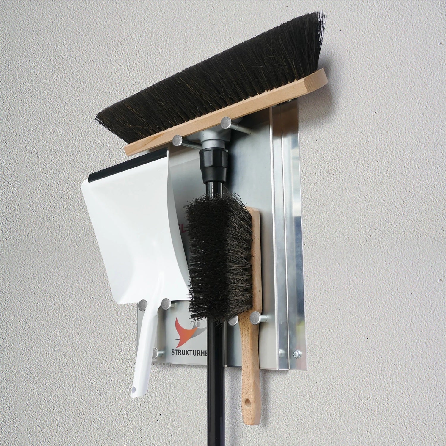 Das STRUKTURHELD® Industry Werkstatt Kehrset ist die perfekte Lösung für alle Arbeitsbereiche, in denen Ordnung, Effizienz und robuste Reinigungsausstattung unverzichtbar sind. Das System kombiniert einen Industriebesen mit reinen Arenga-Borsten, einen Handfeger, eine Metall-Kehrschaufel, sowie eine hochwertige Aluminium‑Wandhalterung, die nach dem 5S‑Prinzip entwickelt wurde.