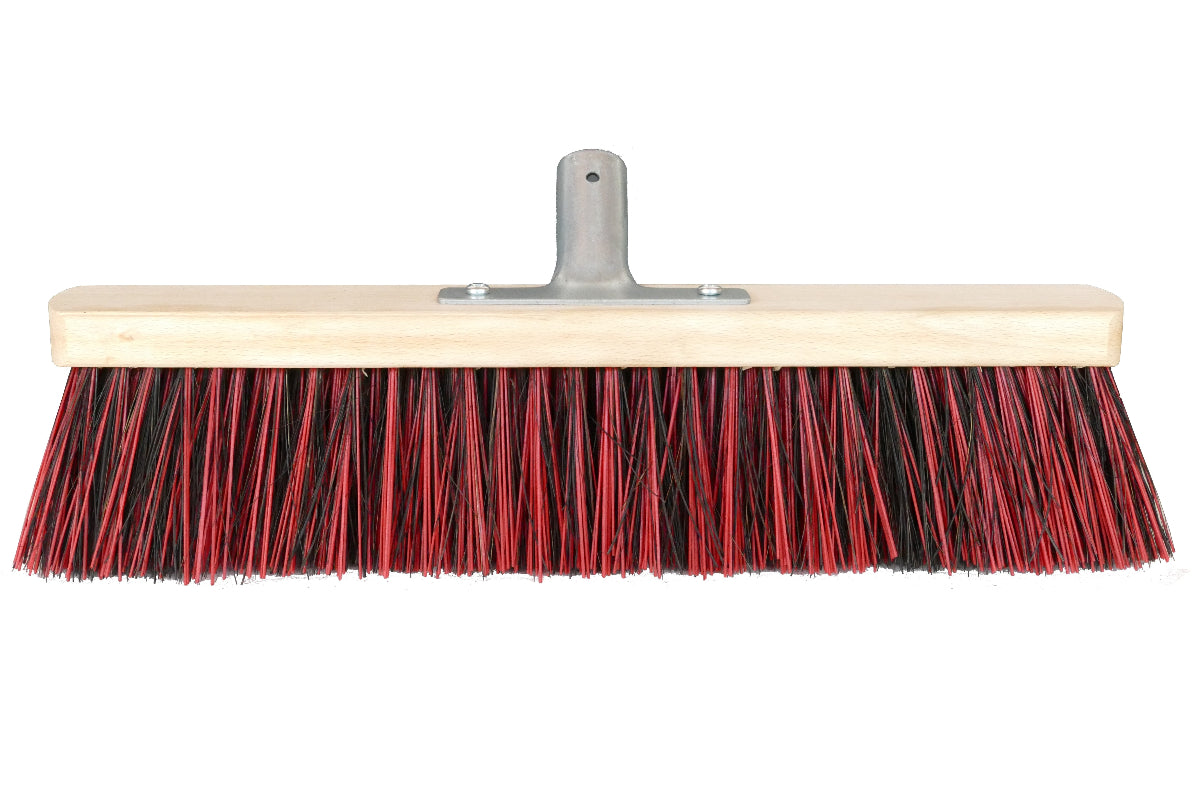 Straßenbesen 60 cm – Arenga‑Elaston‑Mix Rot/Schwarz mit Metallhalter für Außenbereiche
